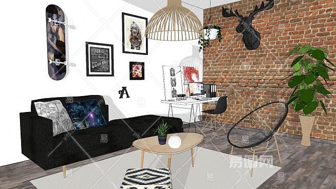 东南亚客厅休闲区sketchup模型下载_sketchup草图大师SKP模型