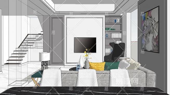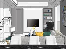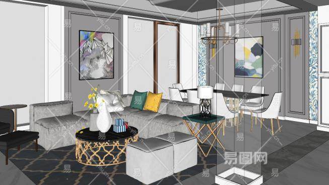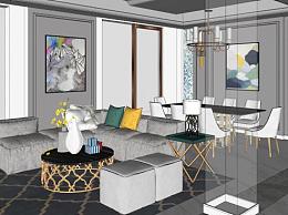 简欧别墅客餐厅室内SU模型下载_sketchup草图大师SKP模型