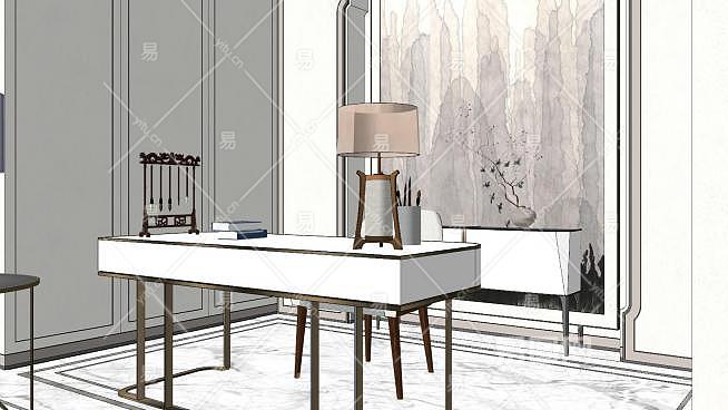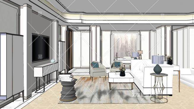 简约现代家装客厅SU模型下载_sketchup草图大师SKP模型