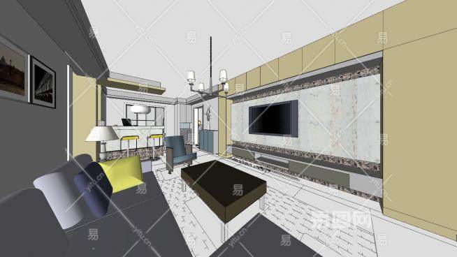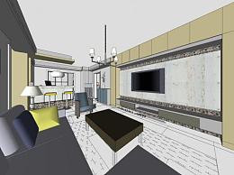 简约家装客厅设计SU模型下载_sketchup草图大师SKP模型