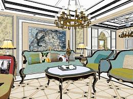 欧式奢华客餐厅SU模型下载_sketchup草图大师SKP模型