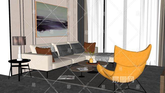 现代户型简约客厅家具SU模型下载_sketchup草图大师SKP模型