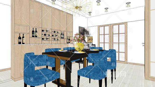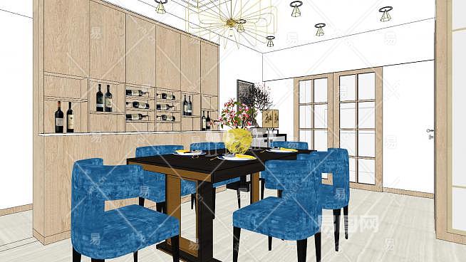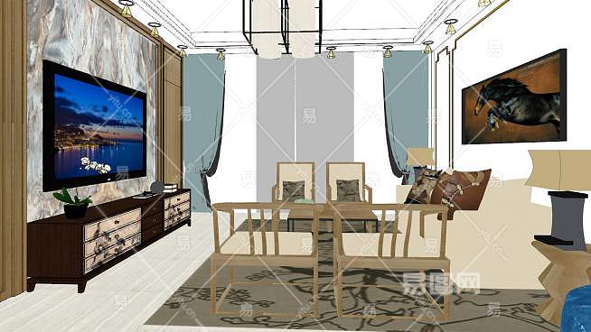 现代户型新中式客厅sketchup模型下载_sketchup草图大师SKP模型