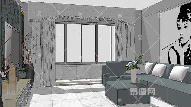 简约风格室内家装SU模型下载_sketchup草图大师SKP模型