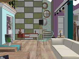 现代小清新客厅SU模型下载_sketchup草图大师SKP模型