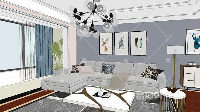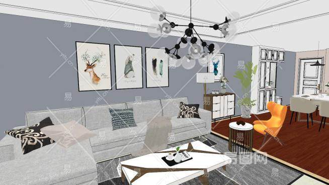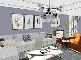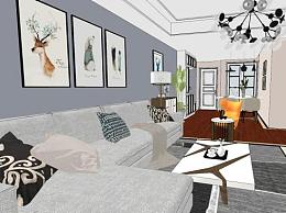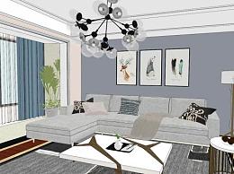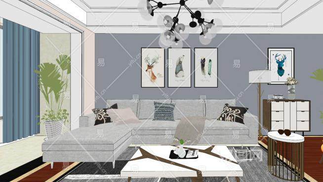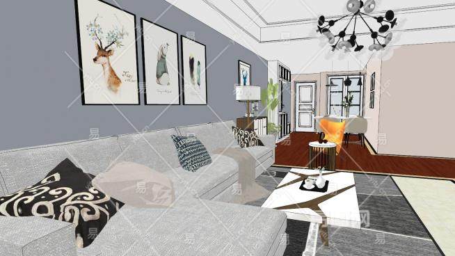 简约现代室内客厅SU模型下载_sketchup草图大师SKP模型