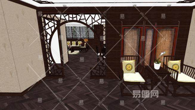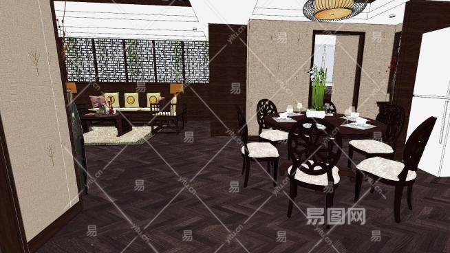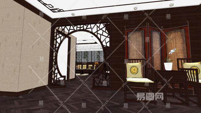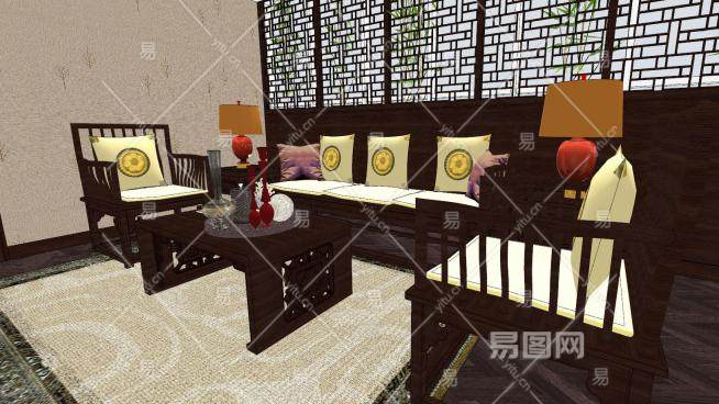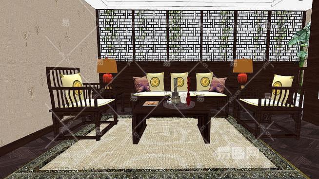 中式室内客厅家装精细SU模型下载_sketchup草图大师SKP模型