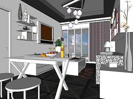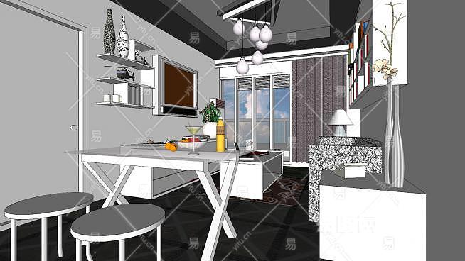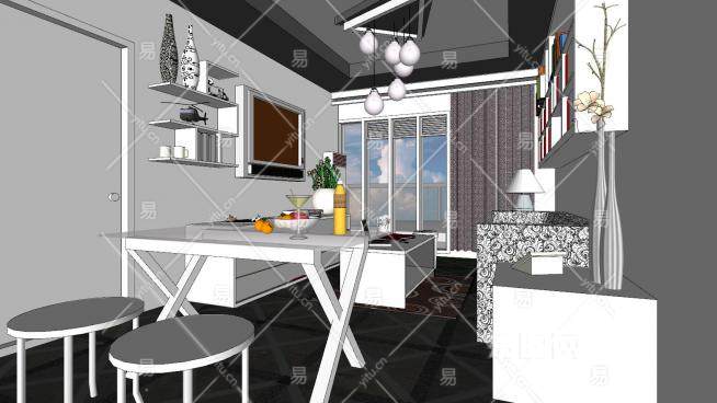 现代风格客厅家装设计SU模型下载_sketchup草图大师SKP模型