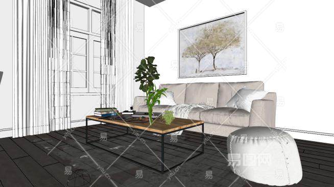 现代简欧客厅设计sketchup模型下载_sketchup草图大师SKP模型