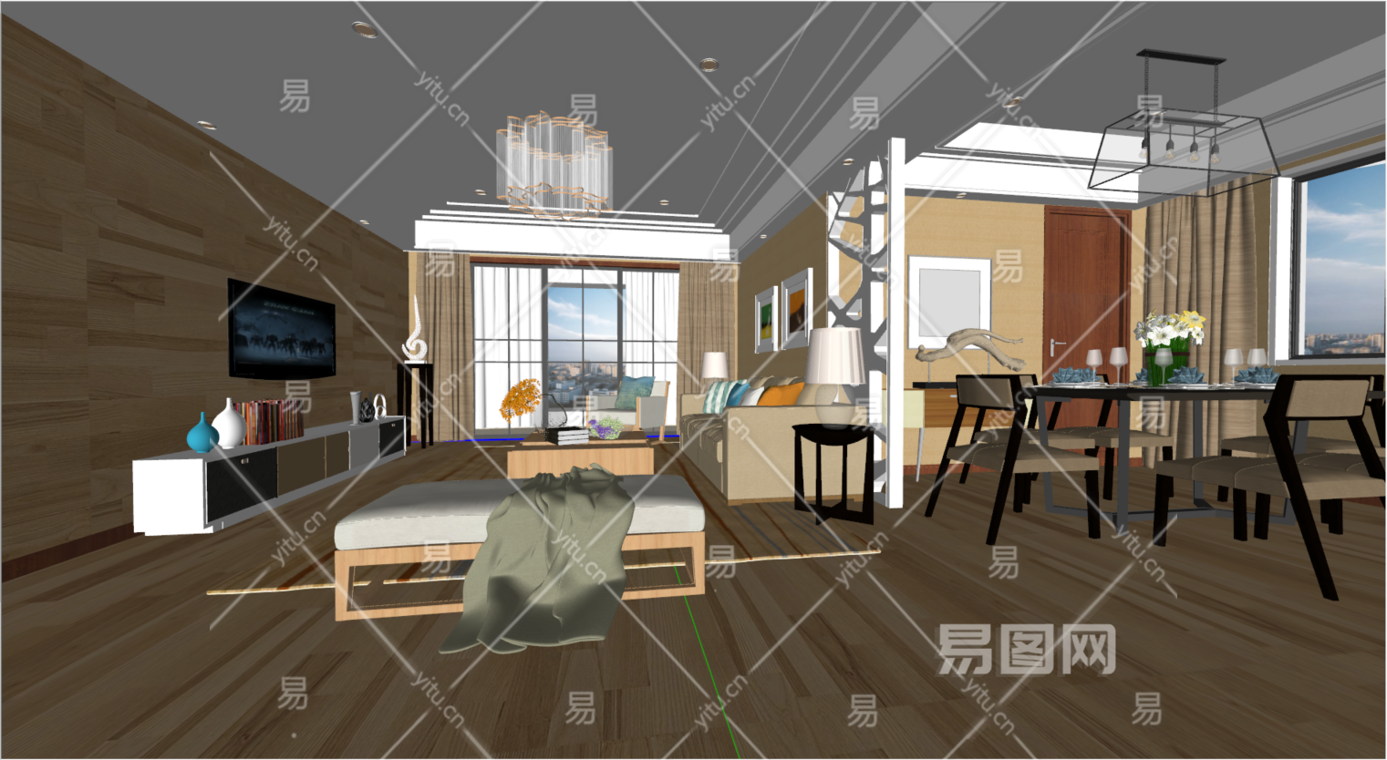 当前的位置:首页 > sketchup > sketchup模型 > 家装 > 客厅 > 现代简约家居客厅 餐厅