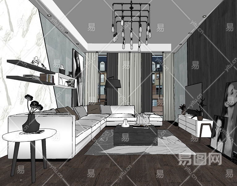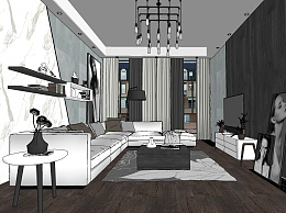 北欧现代客厅su草图模型下载