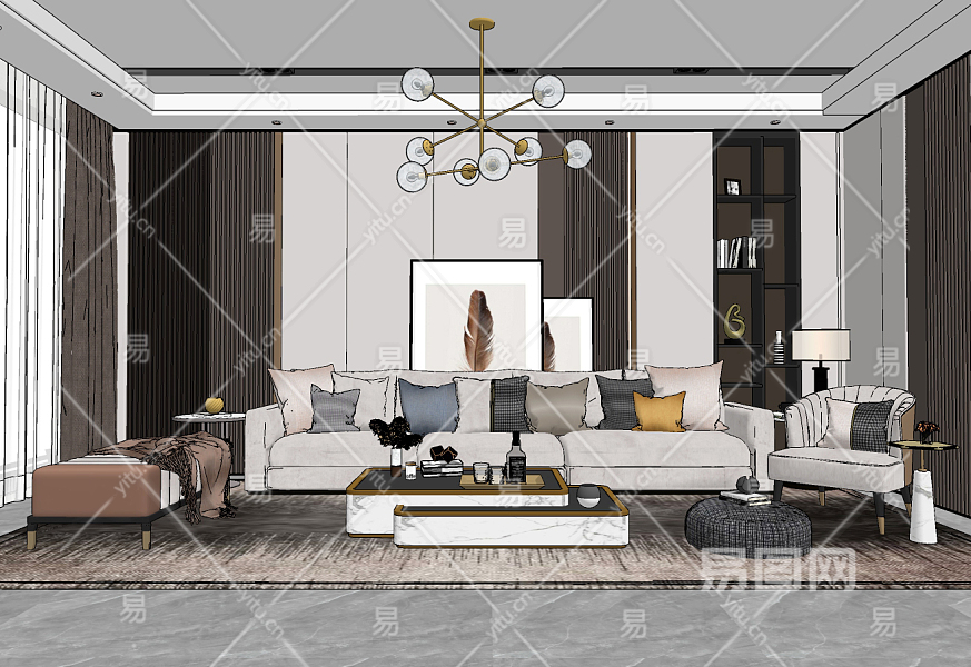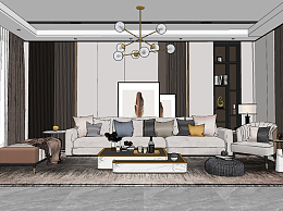 现代轻奢客厅su草图模型下载