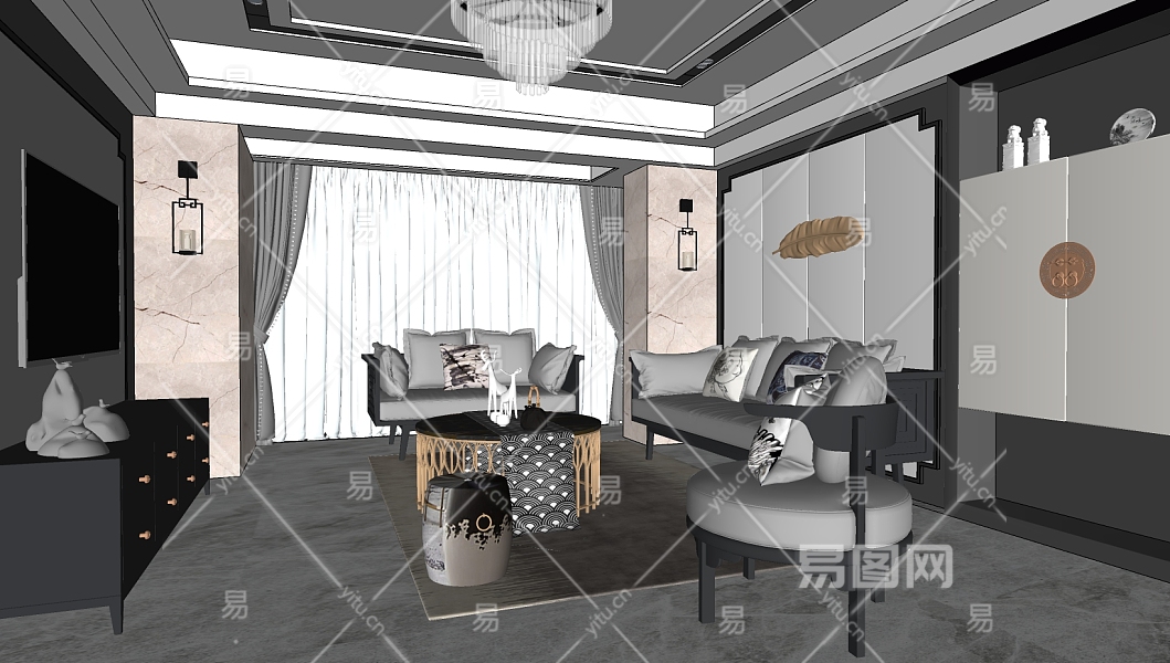 当前的位置:首页 > sketchup > sketchup模型 > 家装 > 客厅 > 新中式客厅 su草图模型下载