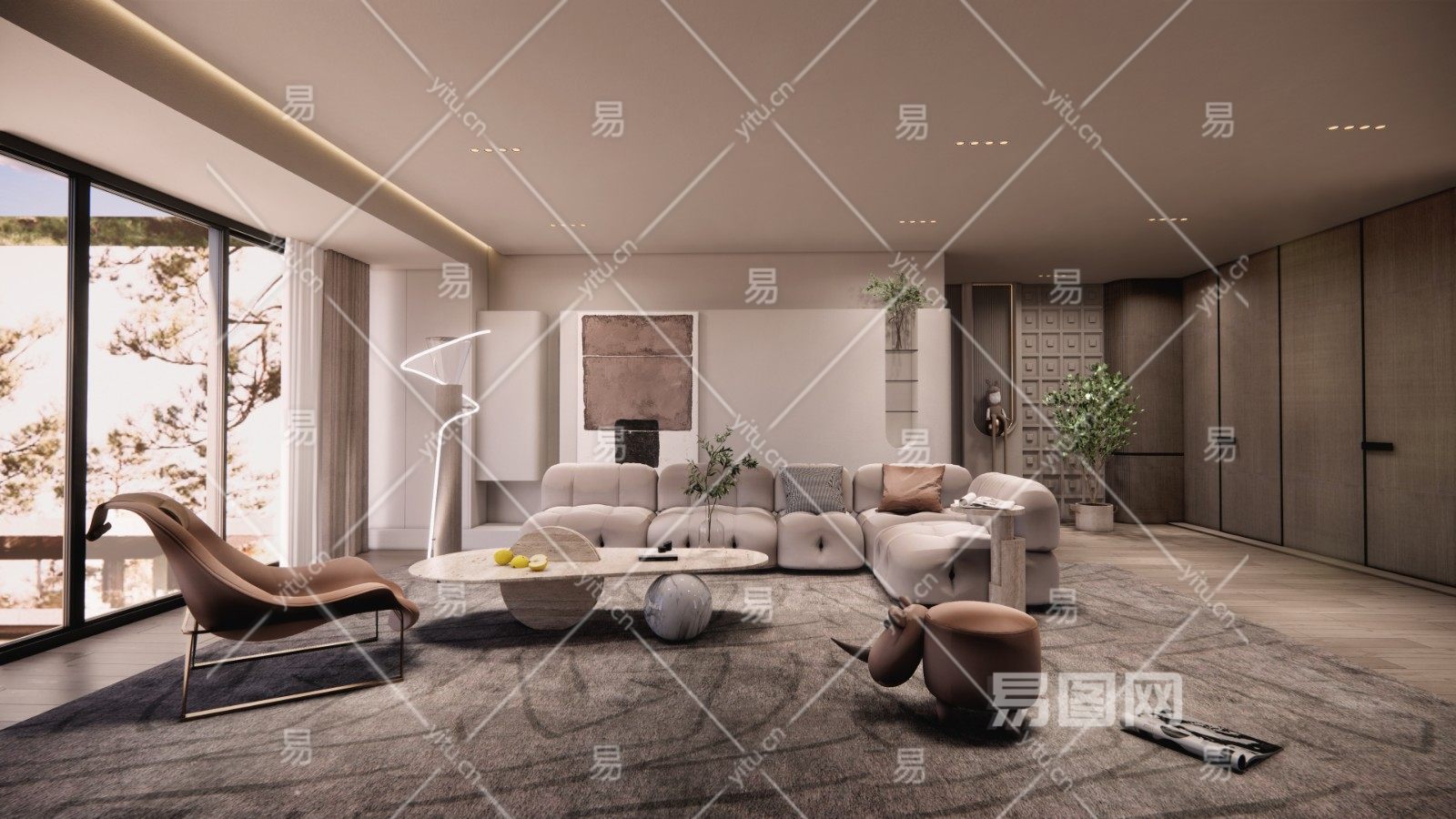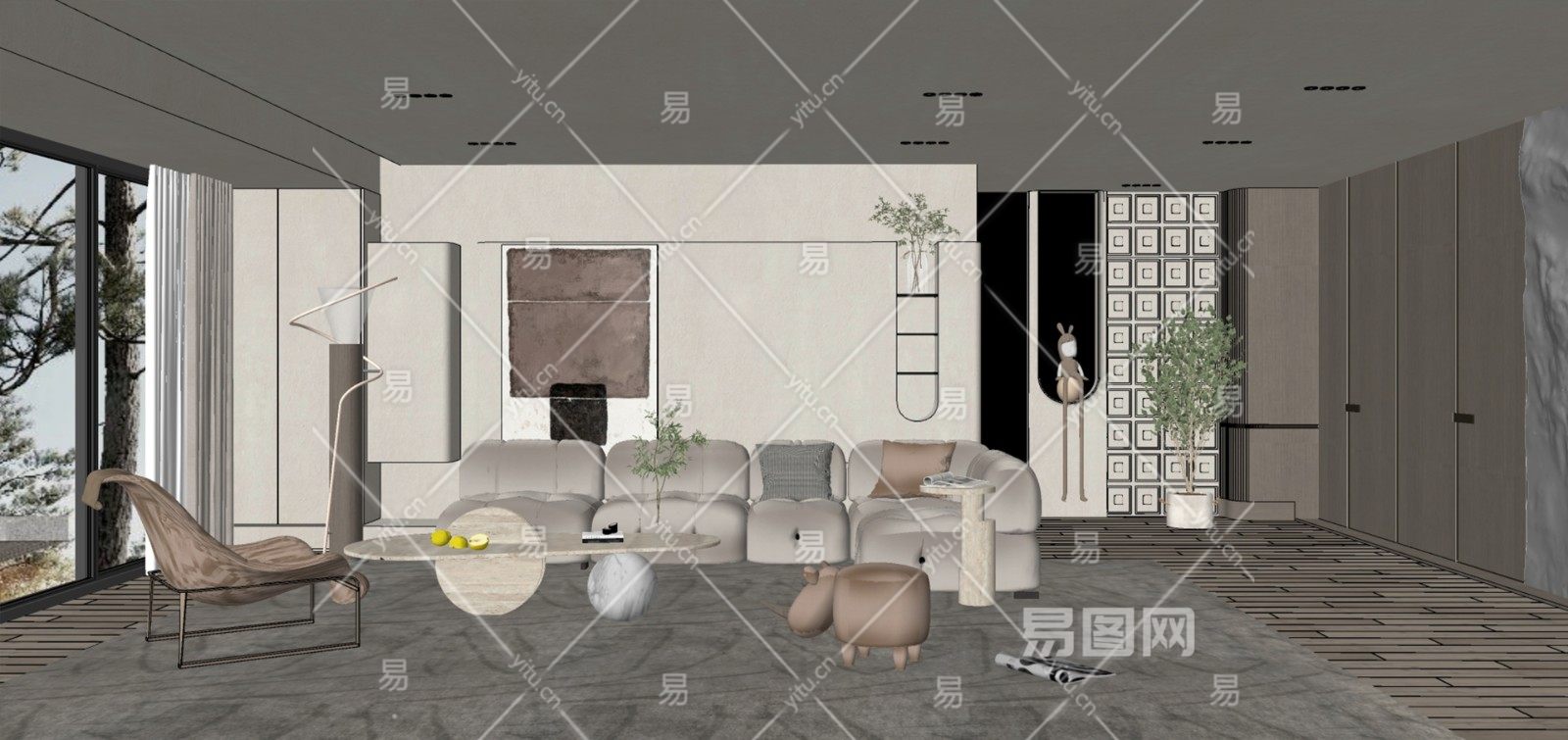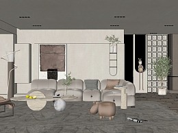现代侘寂风格客厅su模型