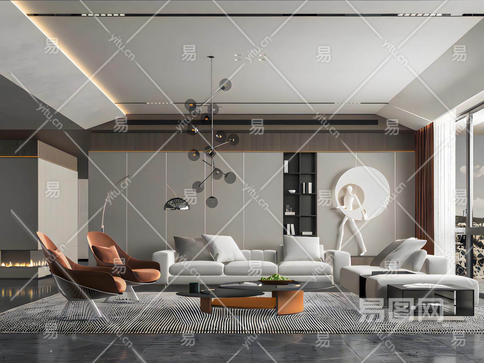 现代别墅客厅模型