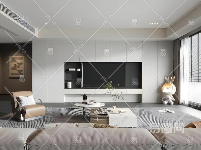 现代奶油风客厅模型