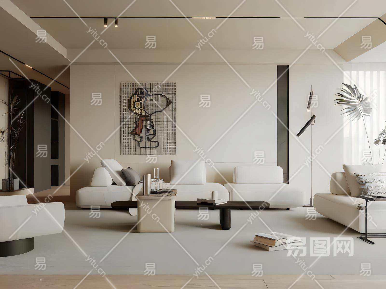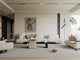 现代奶油风客厅模型