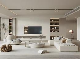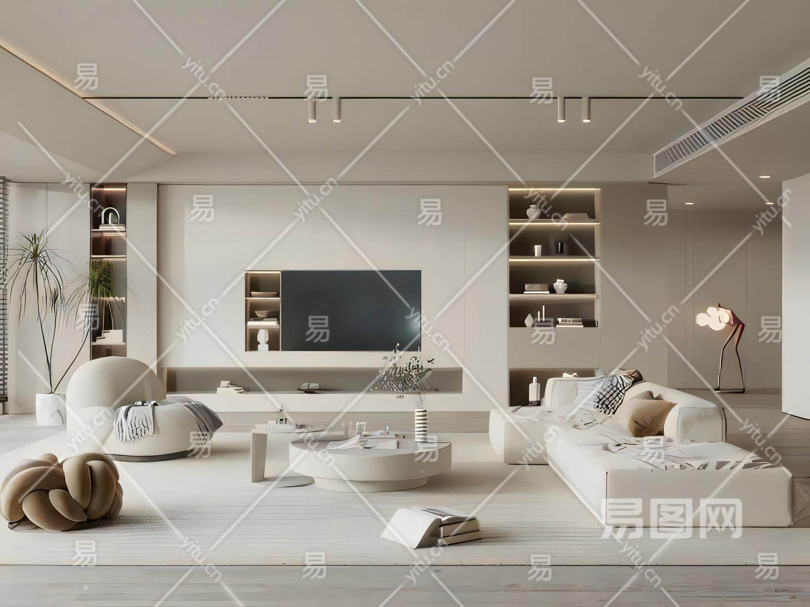 现代奶油风客厅 模型