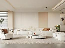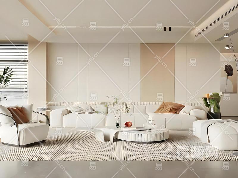 现代奶油风客厅模型