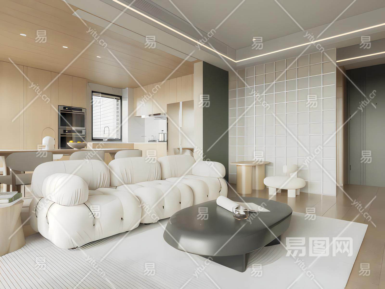SU模型M0004117399侘寂奶油风客餐厅模型