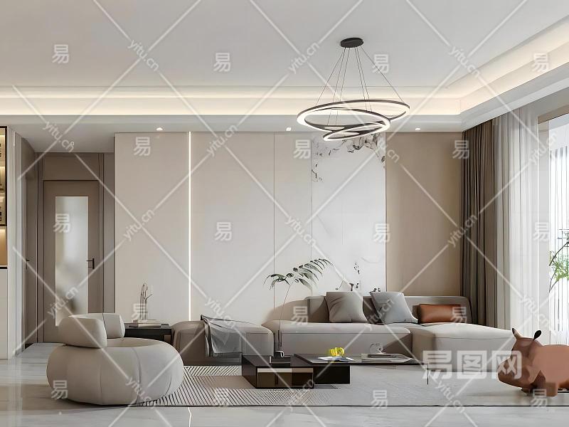 现代奶油风客餐厅模型