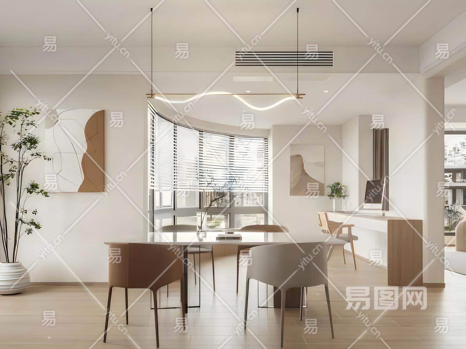 现代奶油风客餐厅模型