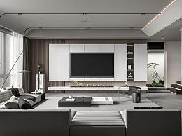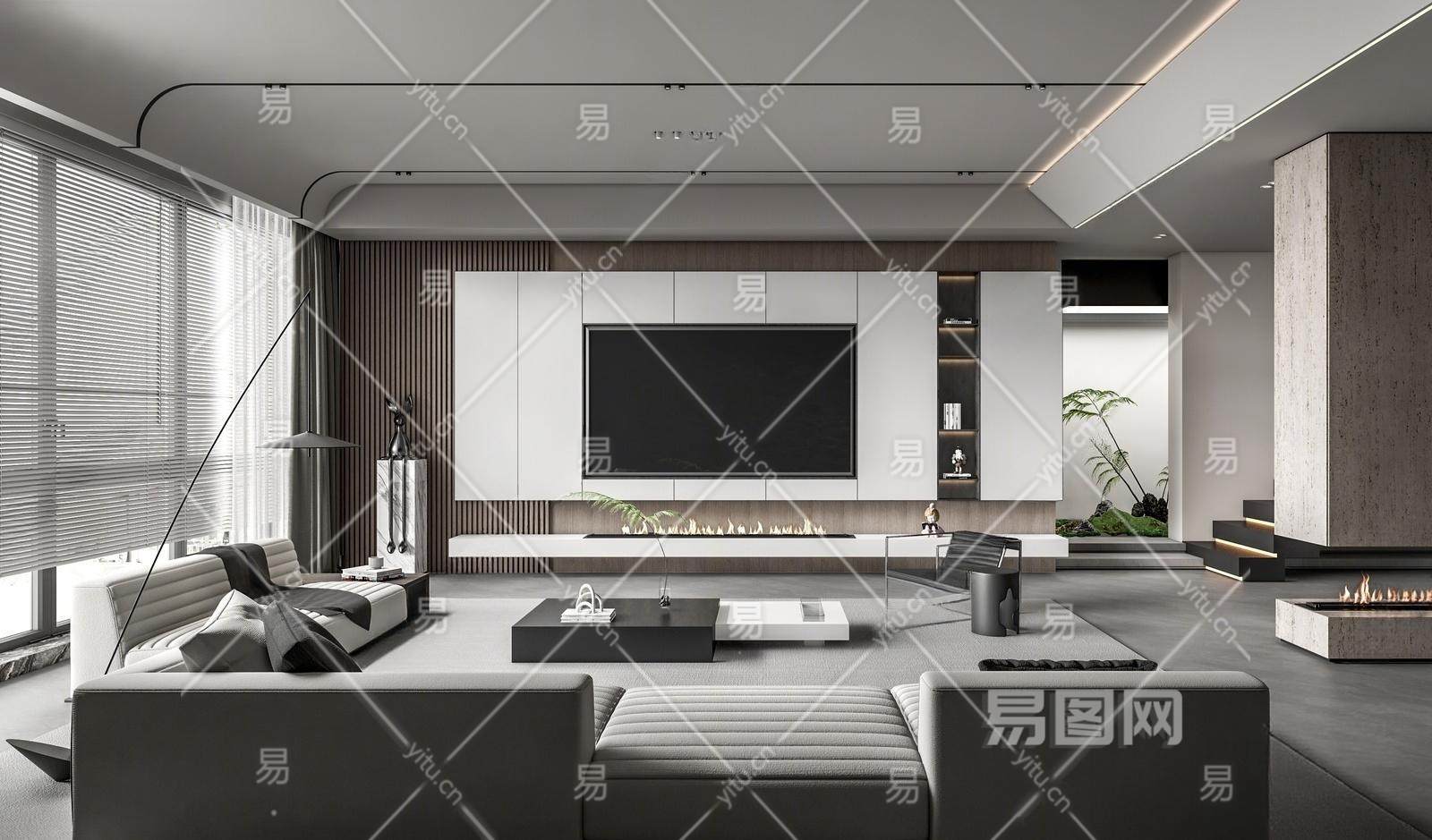 Minotti现代客厅 沙发茶几组合 绿植盆栽 电视背景墙
