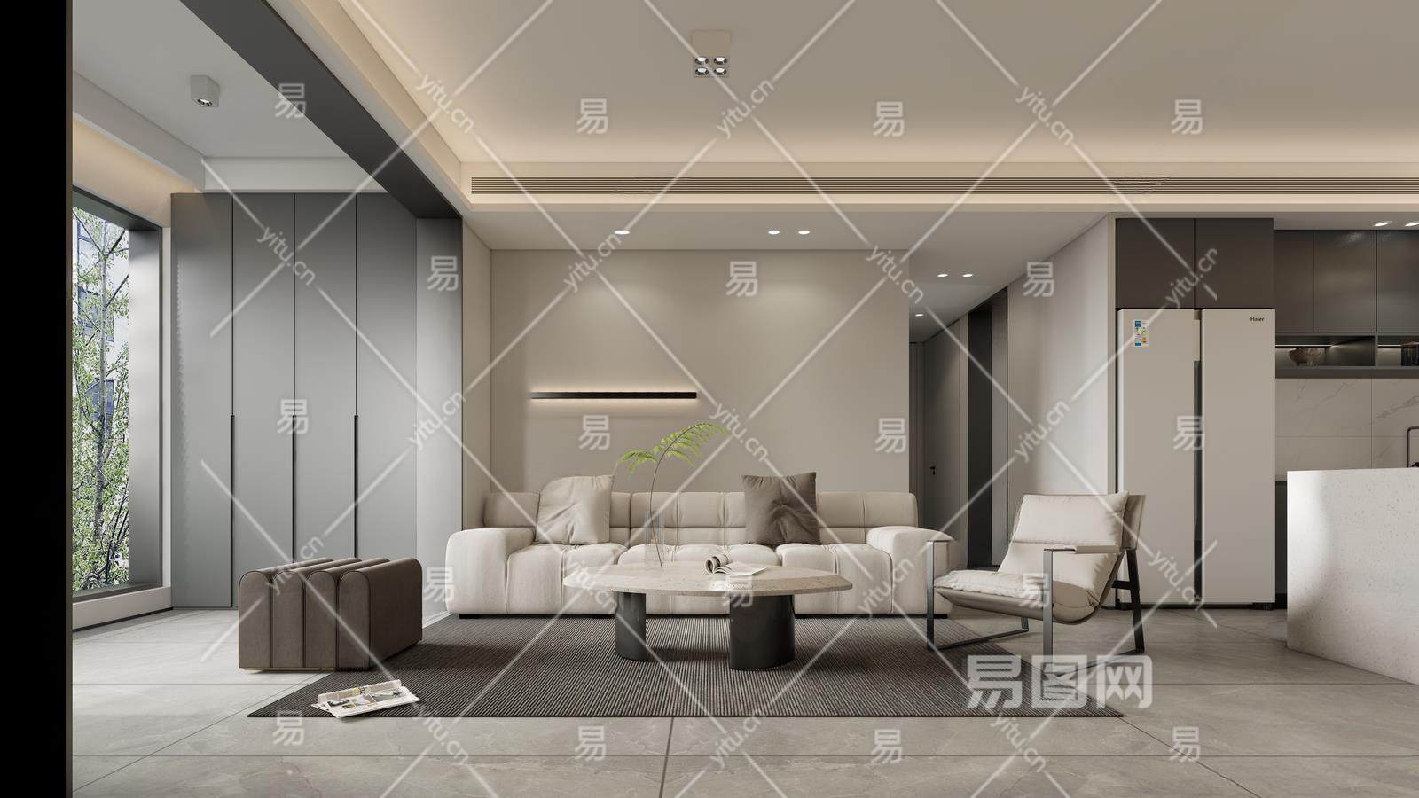 现代客厅 开放式厨房