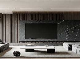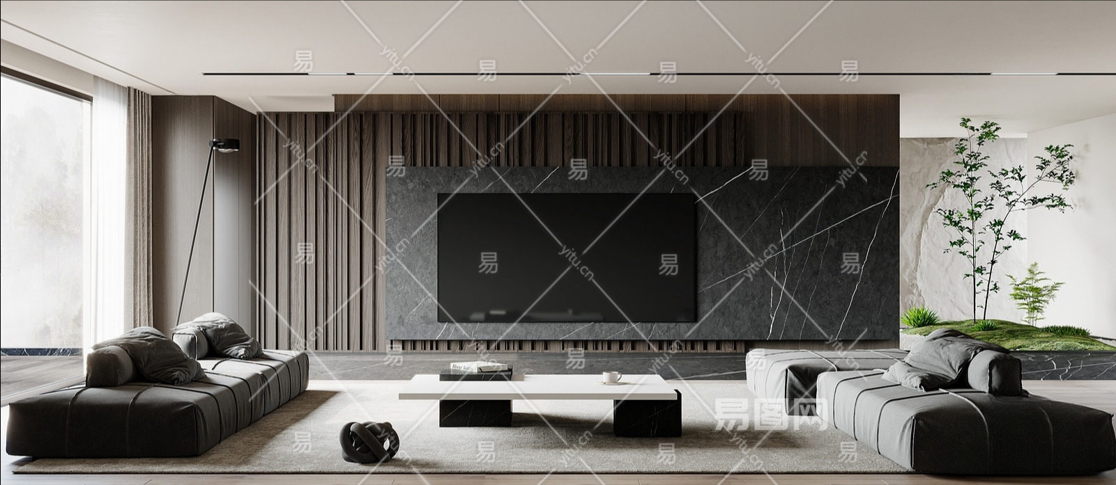 现代客厅 沙发 单椅 茶几 窗帘 地毯 书架 饰品 挂画