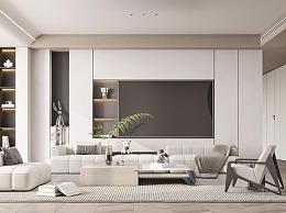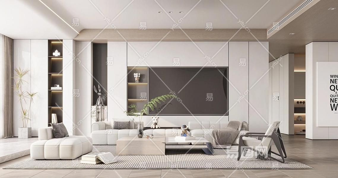 现代客厅 沙发组合 茶几组合 展示柜 饰品 单人椅 装饰画 植物