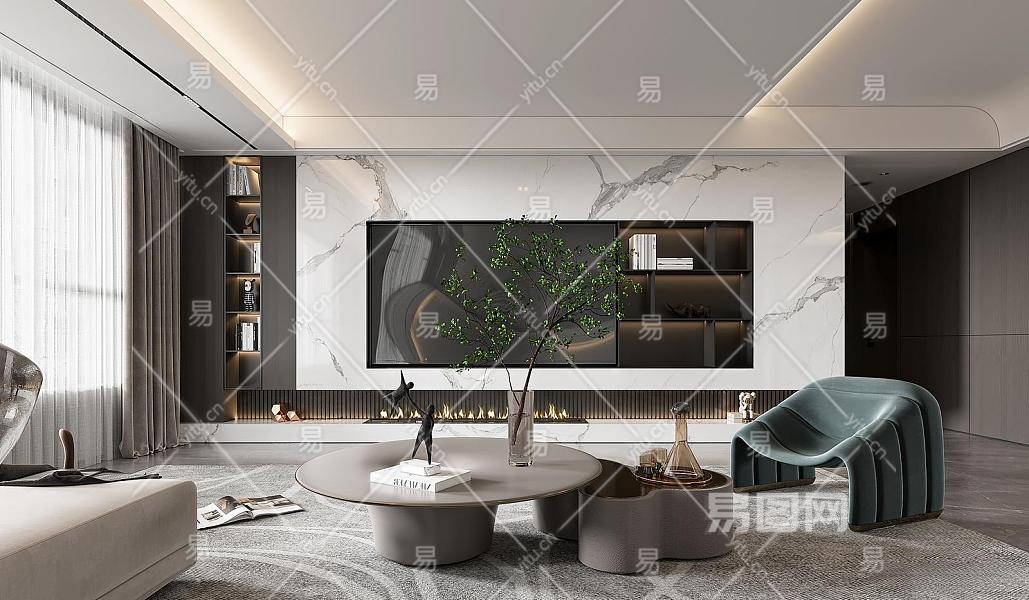 现代客厅 沙发茶几组合 电视墙 电视背景墙 茶几 壁炉 电视柜