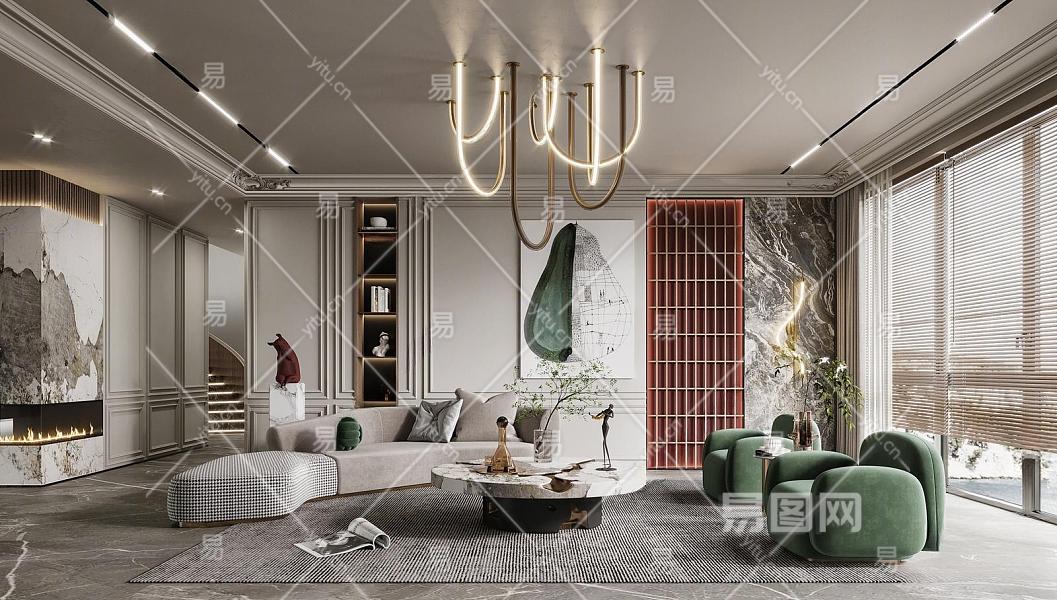 当前的位置:首页 > sketchup > sketchup模型 > 家装 > 客厅 > 法式别墅客厅 弧形沙发 圆形茶几 单人沙发 摆件 雕塑