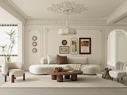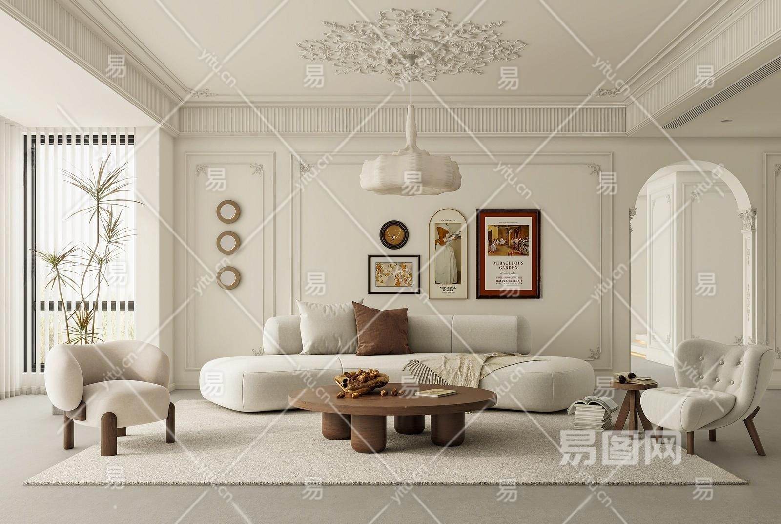 法式家居客厅 单人沙发 茶几组合 吊灯