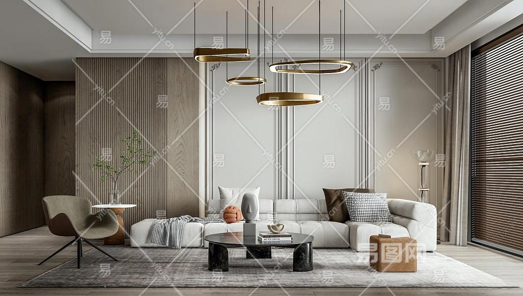 现代客厅沙发茶几组合 吊灯 沙发椅