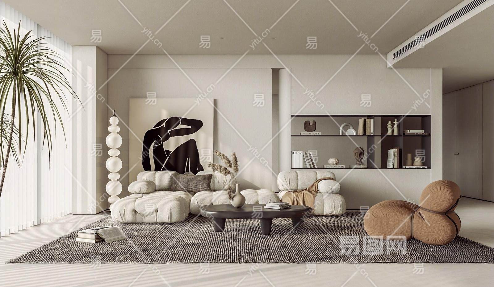 B B ltalia侘寂客厅 沙发茶几 变色龙沙发 懒人沙发 挂画 盆栽 装饰架