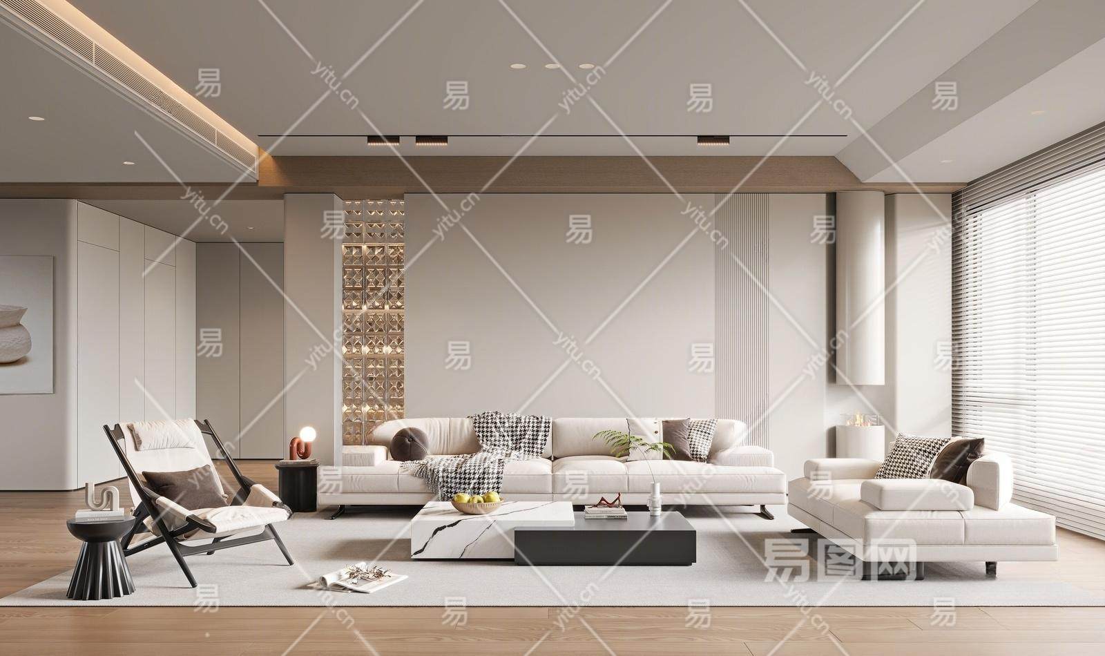 Minott现代家居客厅 沙发茶几组合 单人休闲椅 书籍 绿植 饰品摆件