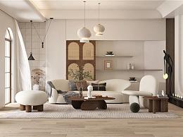 侘寂风家居客厅 沙发茶几组合