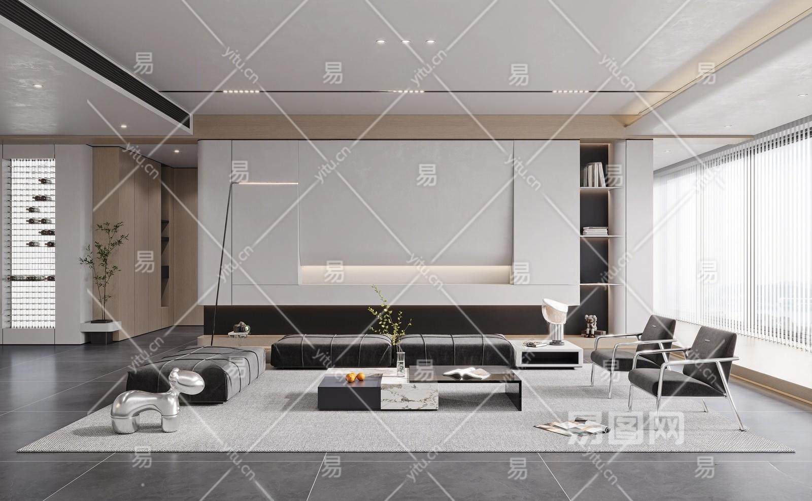 现代极简客厅 沙发茶几组合 绿植 饰品摆件