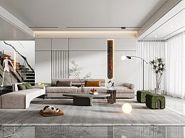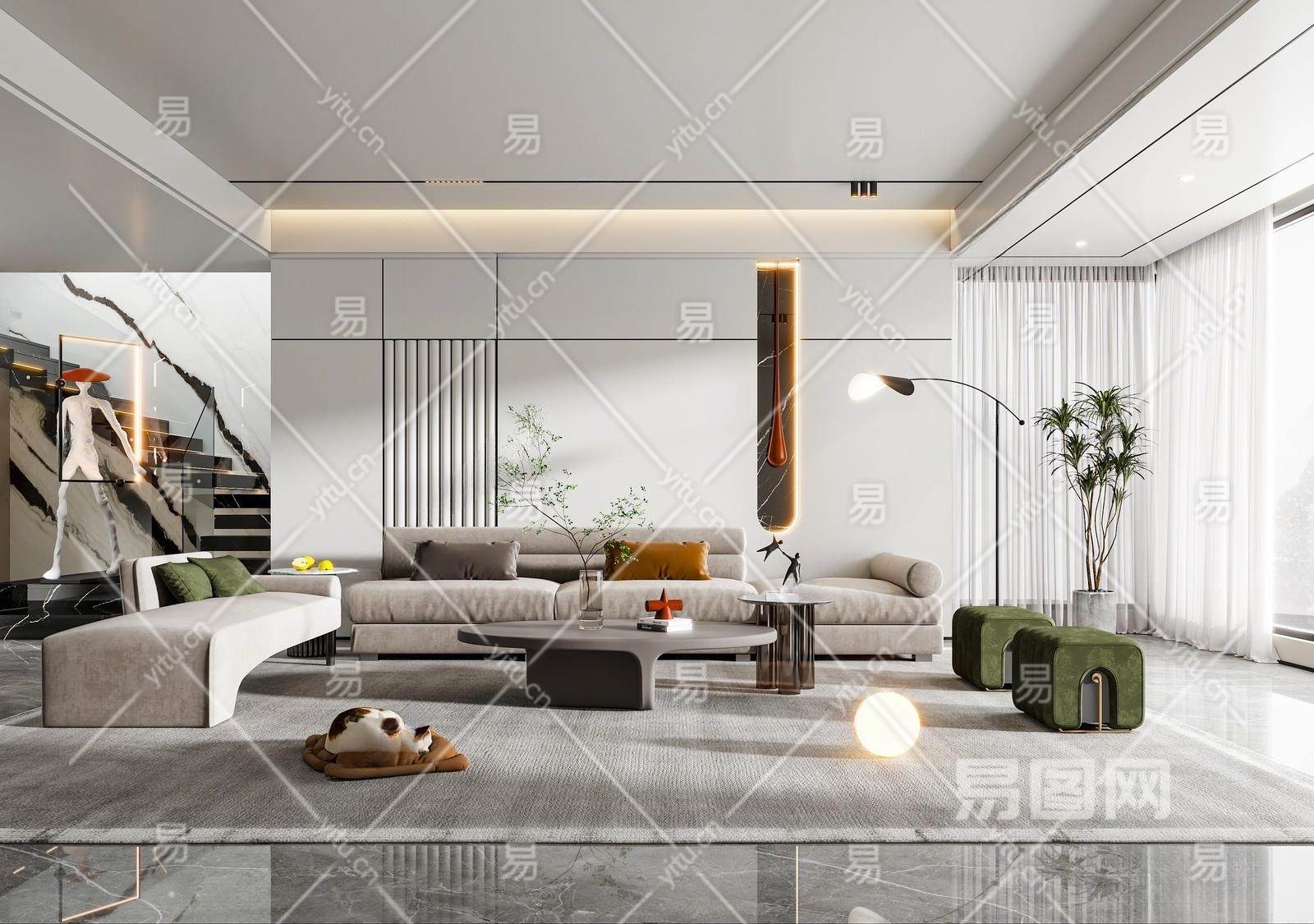 现代简约客厅 多人沙发 背景墙 茶几 休闲椅 贵妃椅