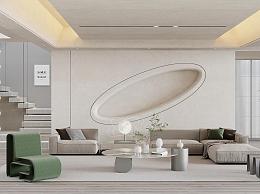 现代简约客厅 布艺沙发 艺术单椅 吊索楼梯 饰品摆设 茶几组合