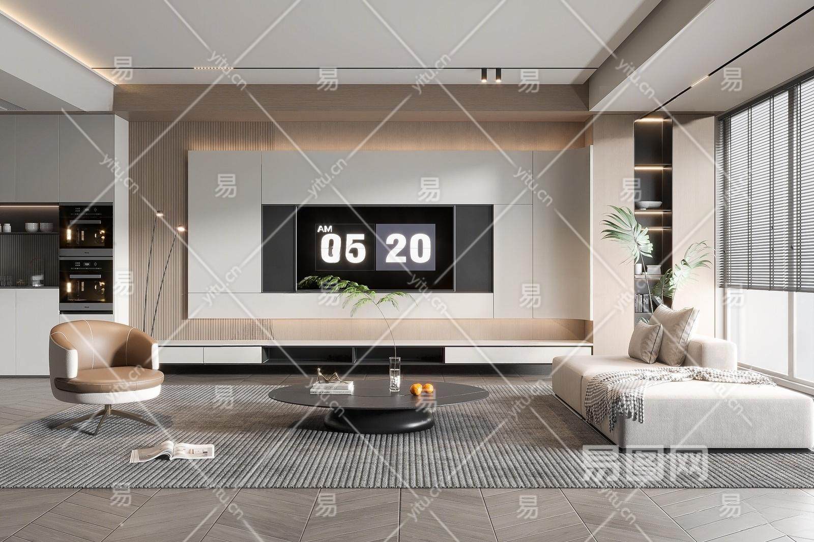 现代客厅 奶油风客厅 客厅 三人沙发 茶几 单人沙发 画 落地灯