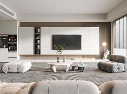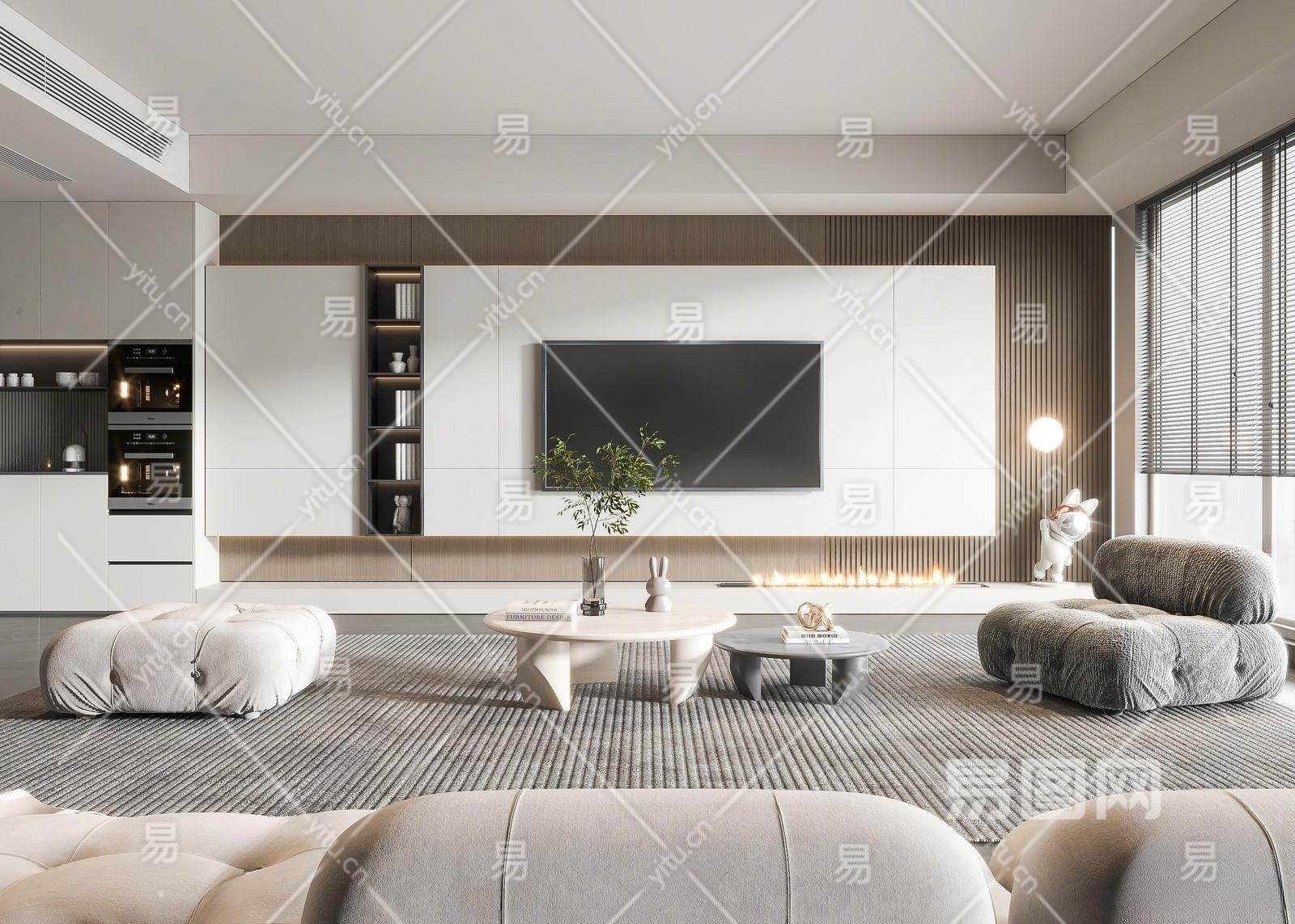 现代客厅 奶油风客厅 茶几 单人沙发 落地灯 电视墙