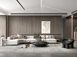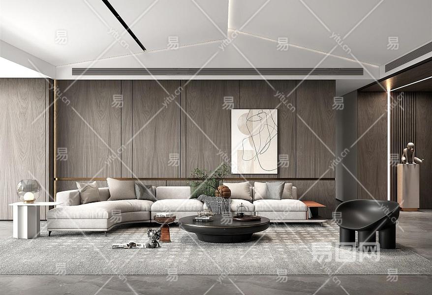 现代客厅 沙发茶几组合 多人沙发 休闲椅 雕塑 地毯