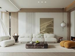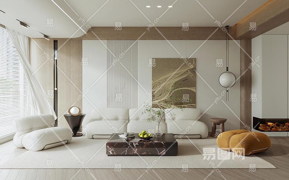 现代奶油风客厅 沙发茶几组合 茶几 装饰画 边几角几 多人沙发 面包沙发