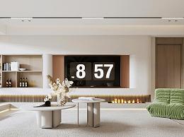 现代奶油风家居客厅 奶油风客厅 沙发茶几组合