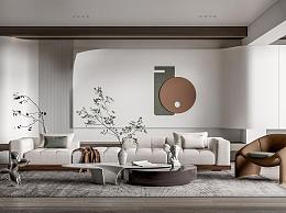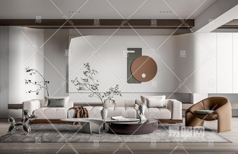 现代客厅 沙发茶几组合 休闲椅 墙饰 花艺摆件
