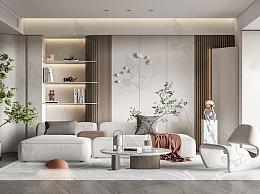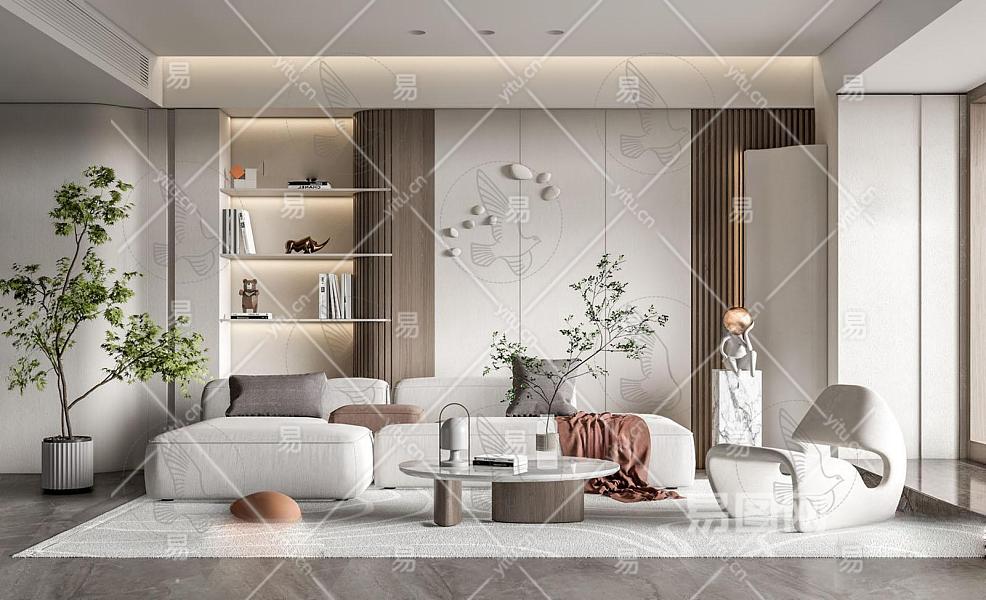 现代客厅 沙发茶几组合 休闲椅 摆柜 盆栽 雕塑