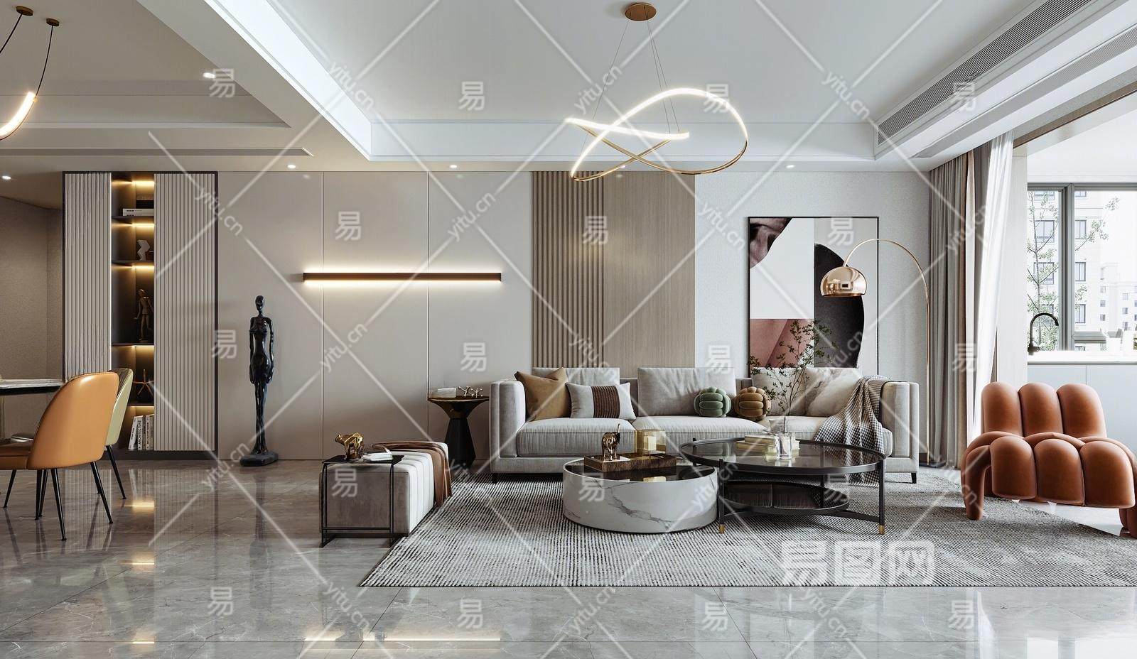 现代客餐厅 客厅 沙发茶几组合 休闲椅 单人沙发 装饰画 茶几