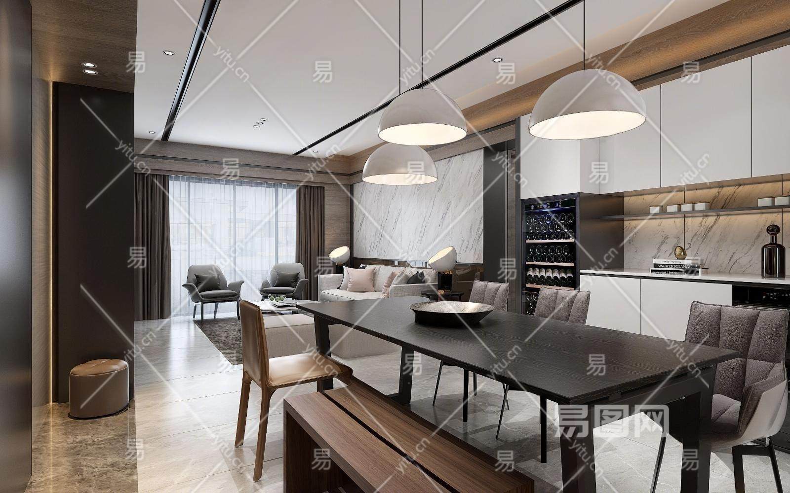 现代客餐厅 沙发茶几 电视墙 餐桌椅 吊灯