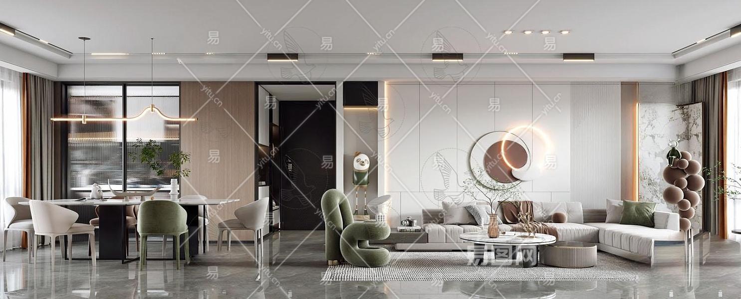 现代客餐厅 沙发茶几 餐桌椅 酒柜